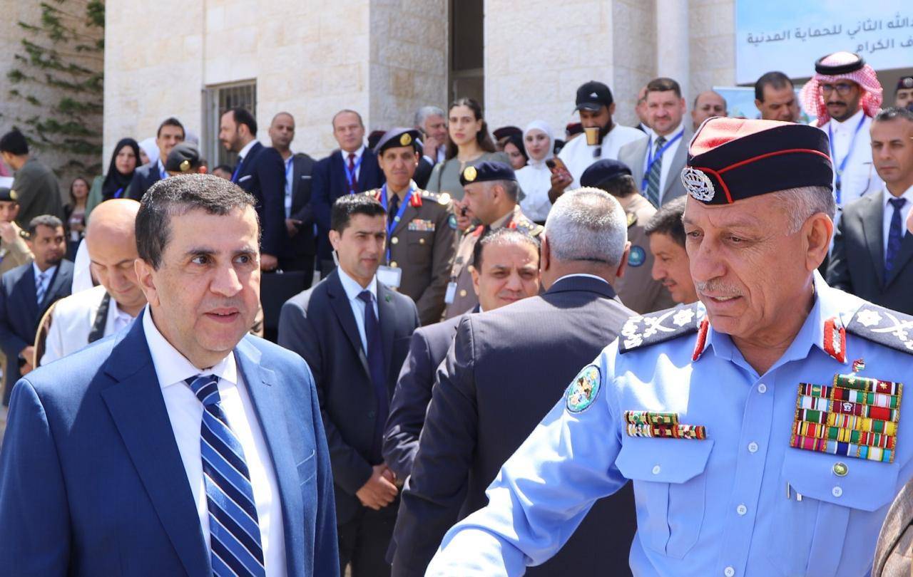 كرّم عطوفة مدير الأمن العام اللواء الدكتور عبيدالله عبد ربه المعايطة، الأستاذ الدكتور أحمد فخري العجلوني، رئيس جامعة البلقاء التطبيقية، خلال حفل افتتاح المؤتمر الدولي الأول الموسوم بــ "إدارة الأزمات في بيئة ديناميكية ومعقدة”، والذي نظمته أكاديمية الأمير الحسين بن عبدالله الثاني للحماية المدنية في مقرها.