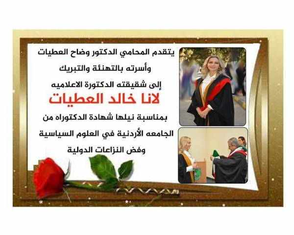 الاعلامية لانا العطيات .. مبارك الدكتوراه