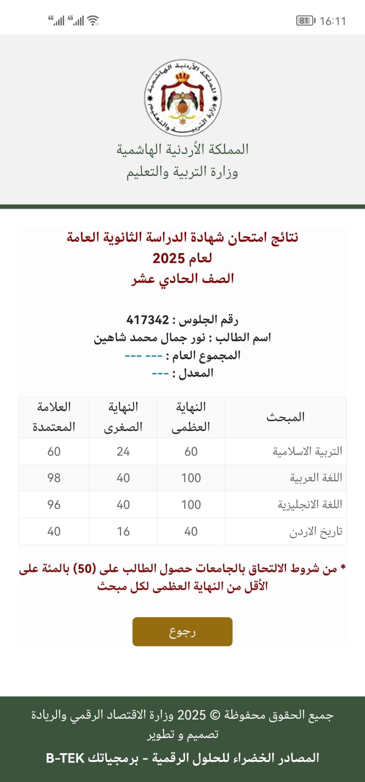احمد فراس حياصات مبروك النجاح