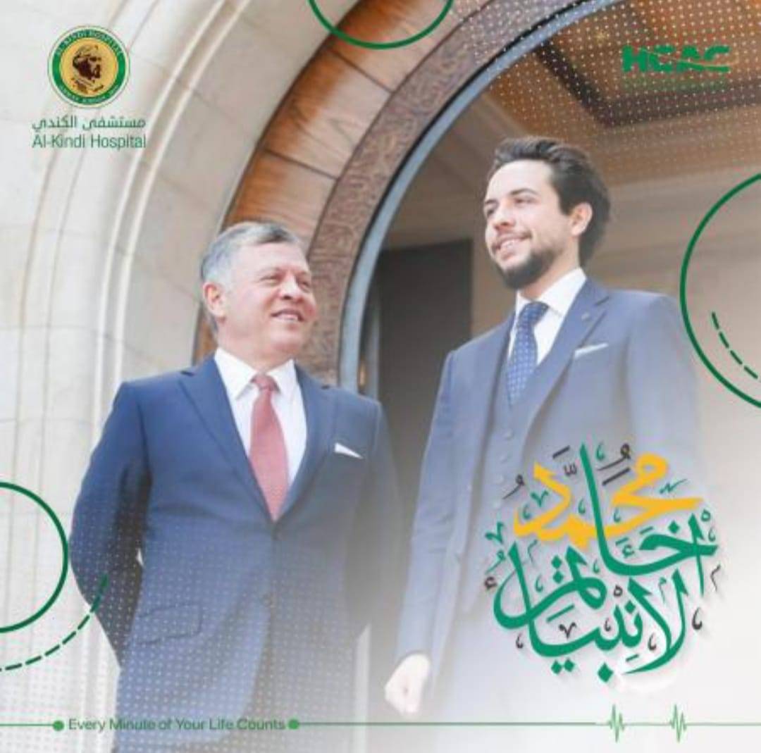 مستشفى الكندي يهنئ جلالة الملك وولي العهد بمناسبة ذكرى المولد النبوي الشريف