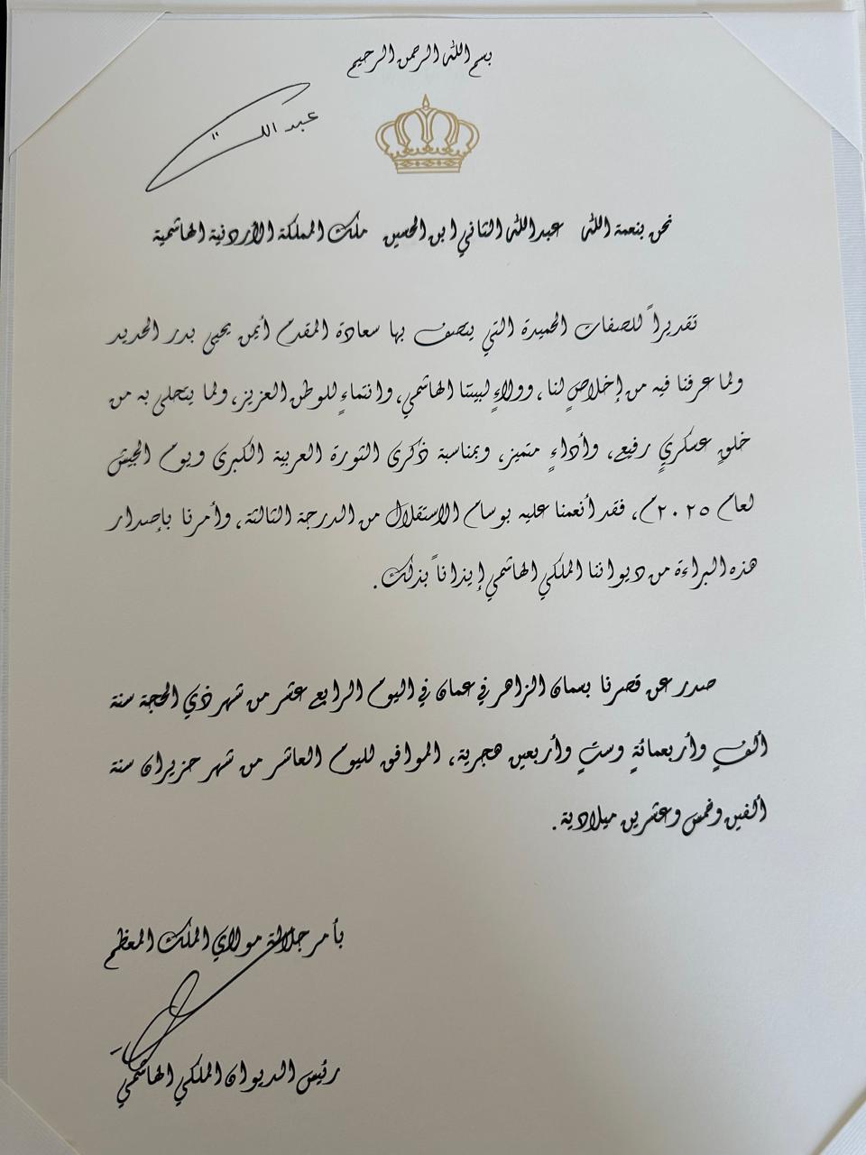 المقدم أيمن الحديد .. ألف مبروك وسام الاستقلال