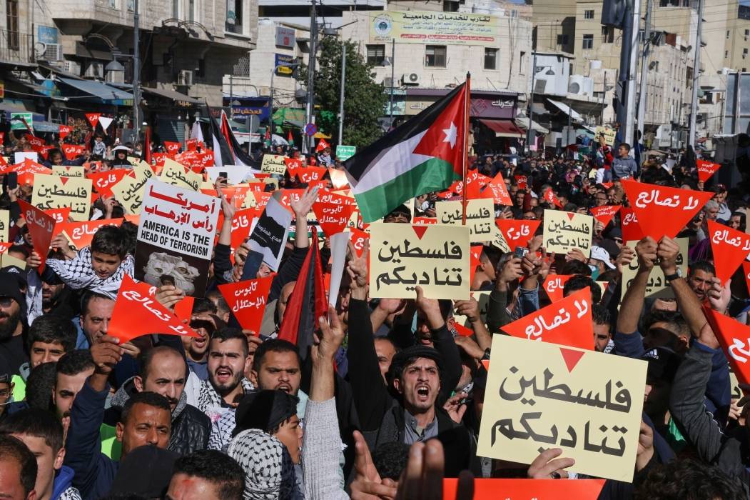 أردنيون يتظاهرون احتجاجا على العدوان الإسرائيلي المتواصل على غزة