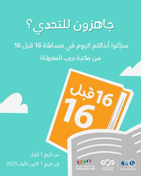 فتح باب التقدم للمشاركة في مسابقة "16 قبل 16" للعام 2025 في شومان