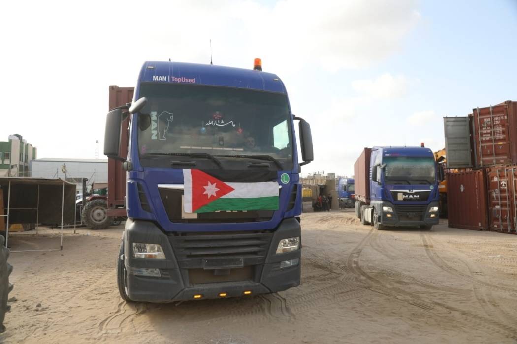 القوات المسلحة تسير قافلة تزويد مساعدات إغاثية للمستشفى الميداني الأردني جنوب غزة "7"