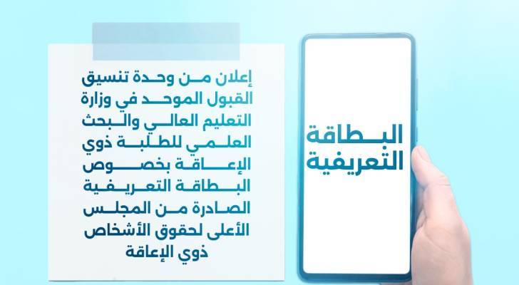 التعليم العالي: بطاقة تعريفية شرط أساسي لقبول ذوي الإعاقة في الجامعات الأردنية