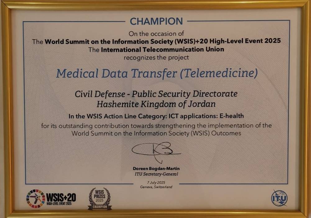 الدفاع المدني يحصل على جائزة القمة العالمية لمجتمع المعلومات (wsis prizes) عن مشروع التيلي ميدسن (telemedicne)