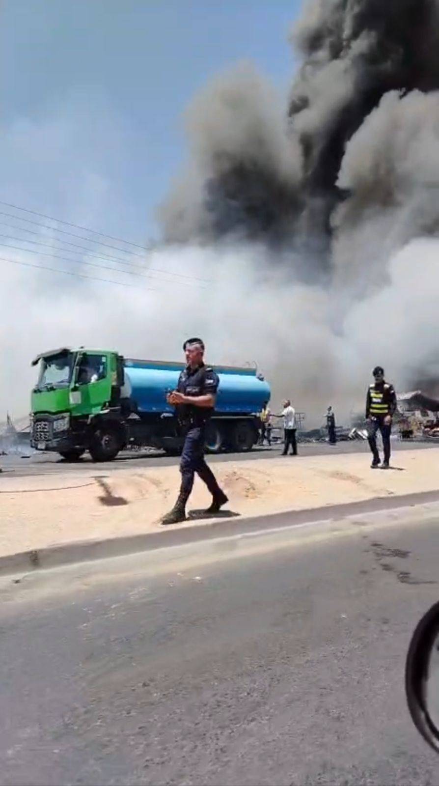 حريق كبير بالقرب من مطار ماركا في محلات لبيع الستوكات والخردوات