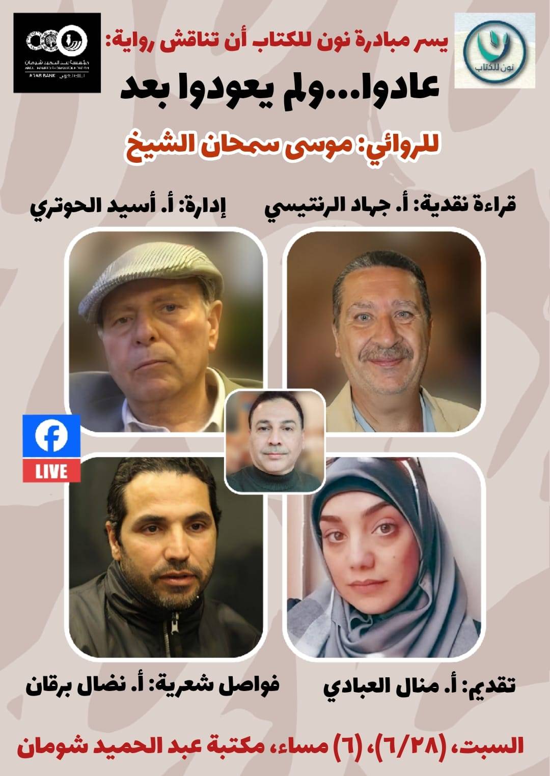 "مبادرة نون للكتاب" على موعد مع رواية "عادوا... ولم يعودوا بعد" للروائي موسى سمحان الشيخ