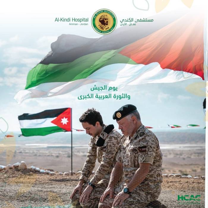 مستشفى الكندي يهنئ جلالة الملك وولي العهد بمناسبة ذكرى الثورة العربية الكبرى ويوم الجيش