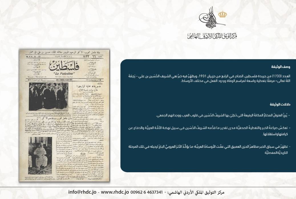 وثيقة نادرة لإعلان وفاة الشريف الحسين بن علي