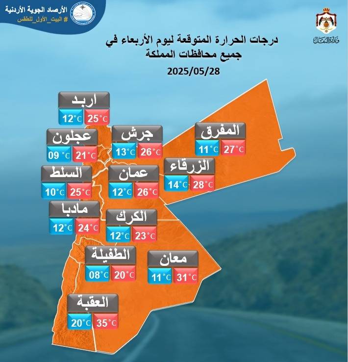 حالة الطقس المتوقعة في الأردن من الأربعاء حتى السبت