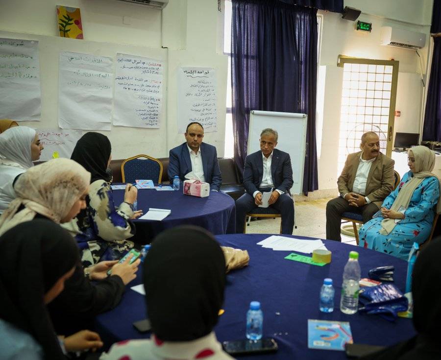 رئيس الوزراء الدكتور جعفر حسان يحاور عدداً من المستفيدات من البرنامج التدريبية في مركز شابات دير أبي سعيد النموذجي في لواء الكورة