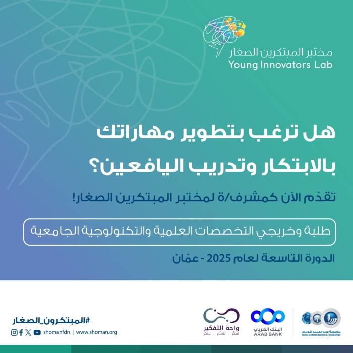 "شومان" تفتح باب التقدم لبرنامج المبتكرين الصغار في دورته التاسعة