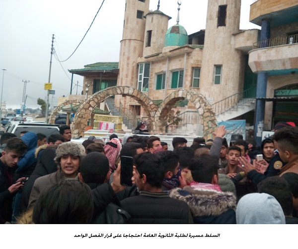 السلط..مسيرة لطلبة الثانوية العامة احتجاجا على قرار الفصل الواحد