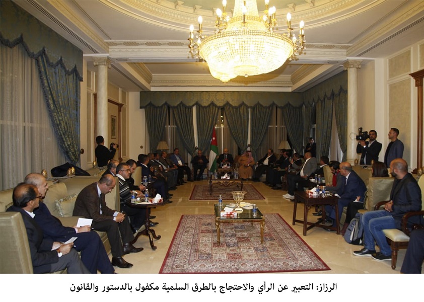 الرزاز: التعبير عن الرأي والاحتجاج بالطرق السلمية مكفول بالدستور والقانون