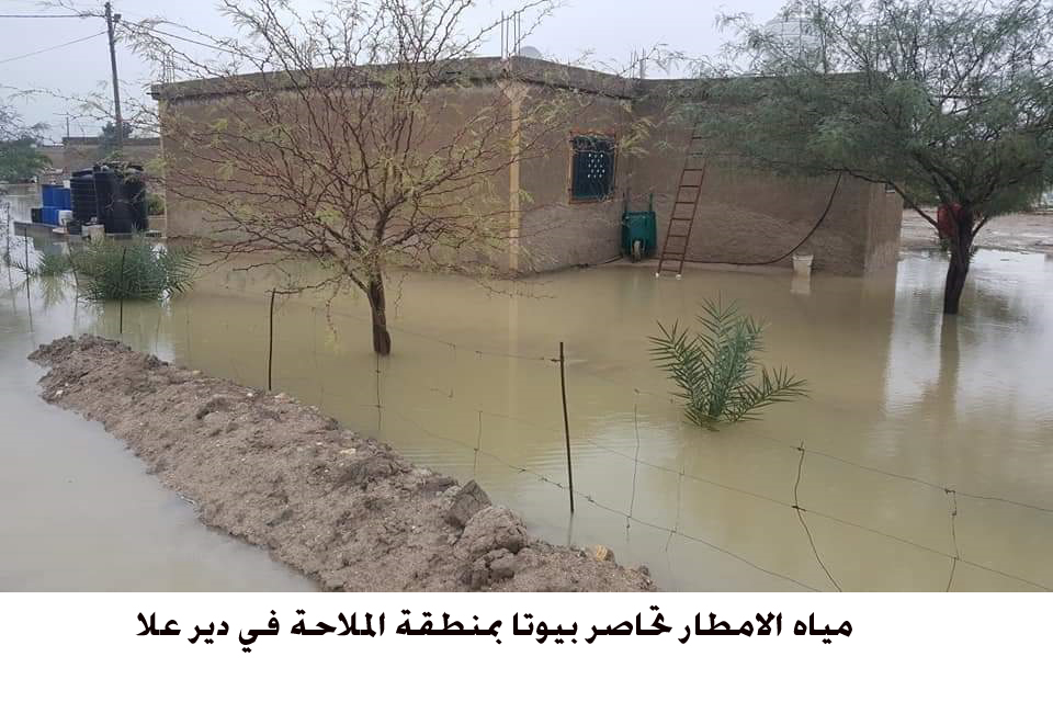 مياه الامطار تحاصر بيوتا بمنطقة الملاحة في دير علا