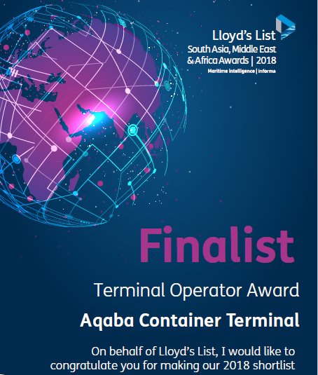 شركة ميناء حاويات العقبة ضمن القائمة النهائية لجائزة لويدز عن فئة "أفضل مشغل موانىء"