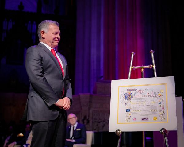 الملك في حفل جائزة تمبلتون يطلب لحظة صمت لضحايا السيول في الأردن