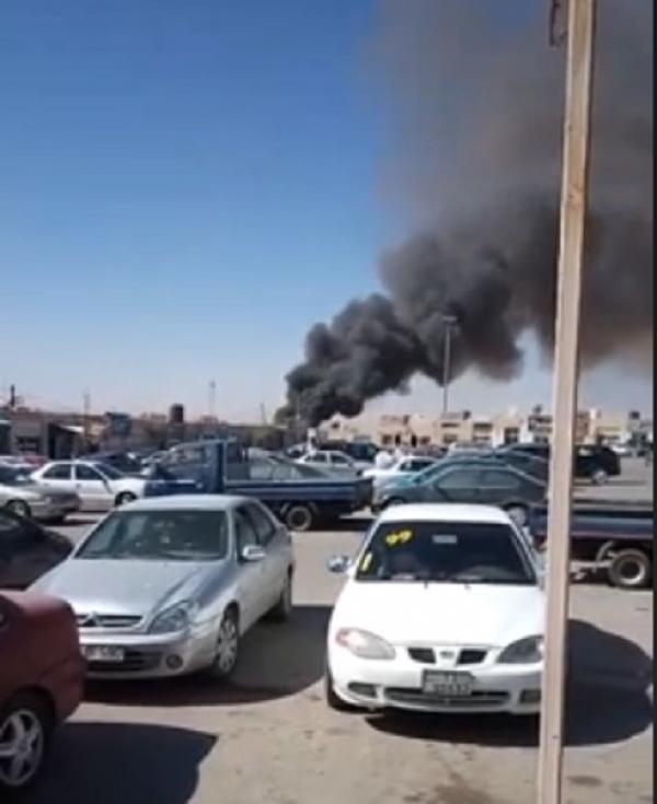 حريق ضخم في ساحة تخزين سيارات بحرة الزرقاء (فيديو)