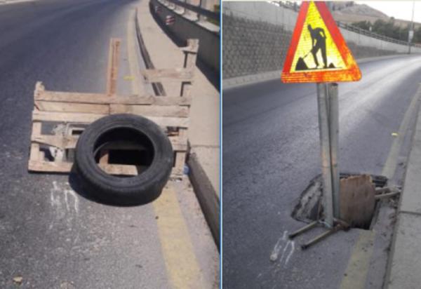 بدلا من اغلاقها .. الاشغال تحذر من "حفرة" بالشارع