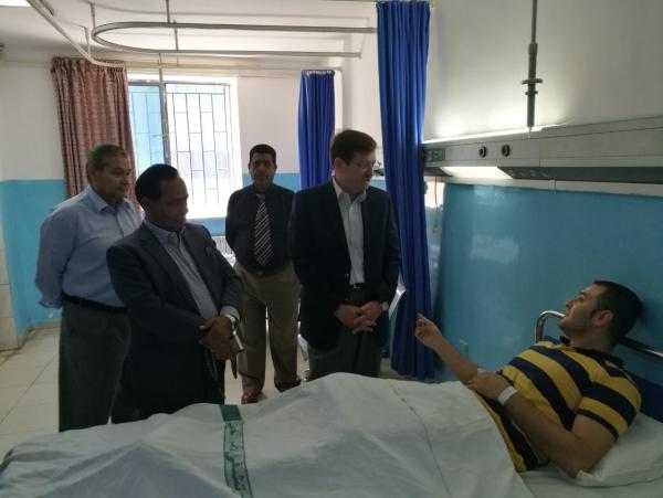 وزير الصحة يزور طبيب وممرضين تم الاعتداء عليهم امس