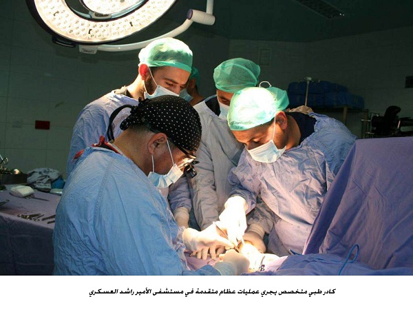كادر طبي متخصص يجري عمليات عظام متقدمة في مستشفى الأمير راشد العسكري