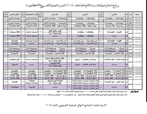 التربية تعتمد البرنامج النهائي لصيفية التوجيهي للعام 2018