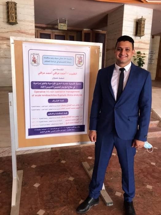 الطبيب أحمد عراقي يحصل على الماجستير في جراحة العظام من كلية الطب بجامعة القاهرة