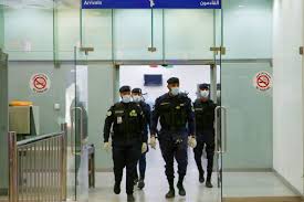 توزيع الكمامات الطبية على المسافرين في مطار الكويت