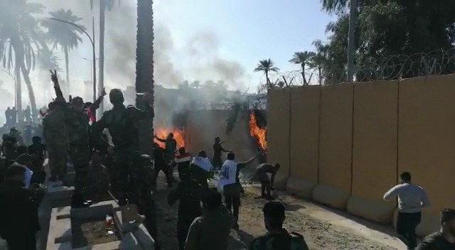 عناصر الحشد الشعبي بالعراق تقتحم السفارة الاميركية ببغداد