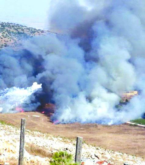 الجيش الاسرائيلي يلقي قنابل حارقة على احراج بمزارع شبعا