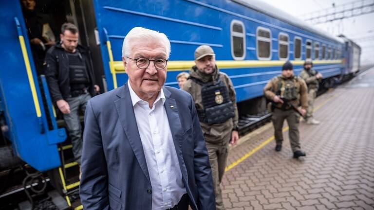 الرئيس الألماني يحتمي بملجأ أوكراني (صورة)