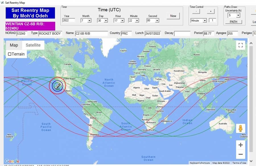"الفلك الدولي" يكشف: حطام الصاروخ الصيني يسقط الساعة 8:22 مساء اليوم