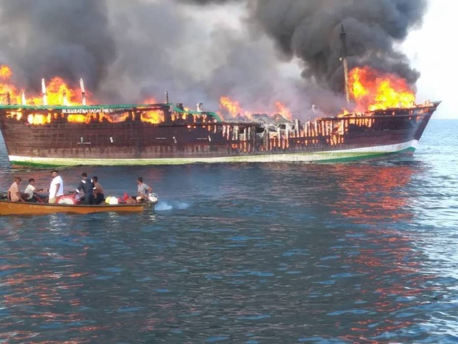 حريق هائل في سفينة شحن محملة بالسيارات بميناء دبي