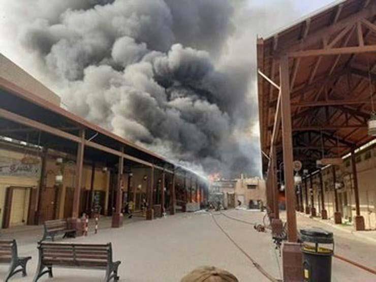 5 فرق للإطفاء تتعامل مع حريق ضخم في المباركية