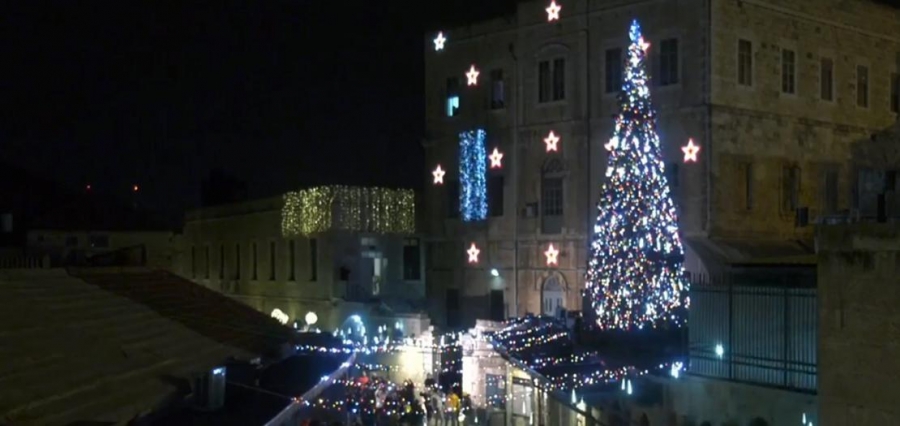 شجرة الميلاد تضاء في قلب الأرض المقدسة