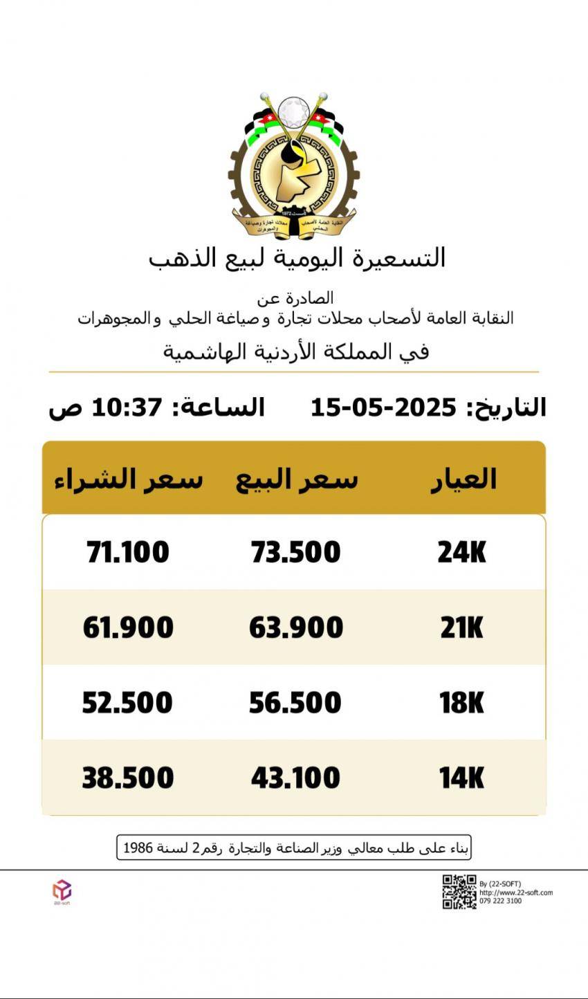 65.7 دينار سعر الذهب عيار 21 بالسوق المحلية
