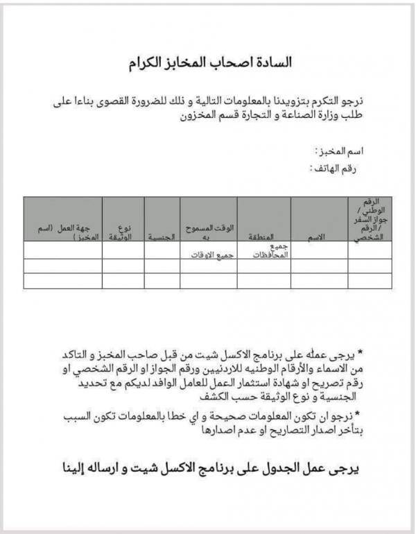المخابز تطالب ببيانات عامليها .. والحموي: احترازيا للحظر الشامل