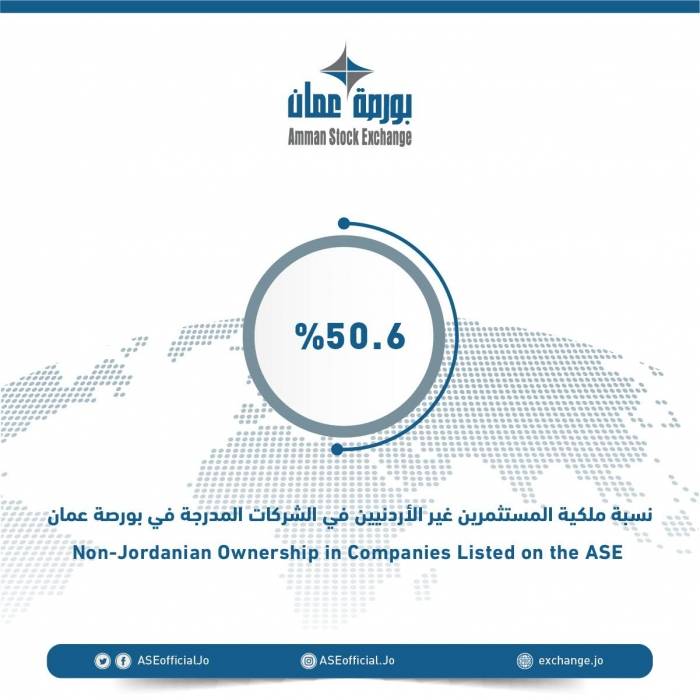 50.6 % نسبة ملكية المستثمرين غير الأردنيين في الشركات المدرجة في بورصة عمان