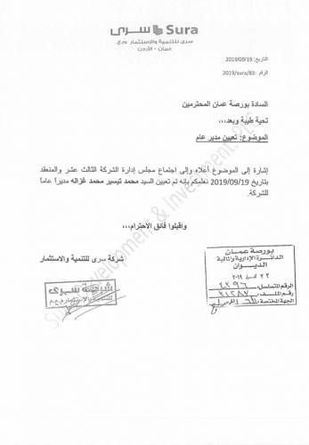 تعيين السيد محمد تيسير غزاله مديرا عاما لشركة سُرى للتنمية والاستثمار (مساهمة عامة)