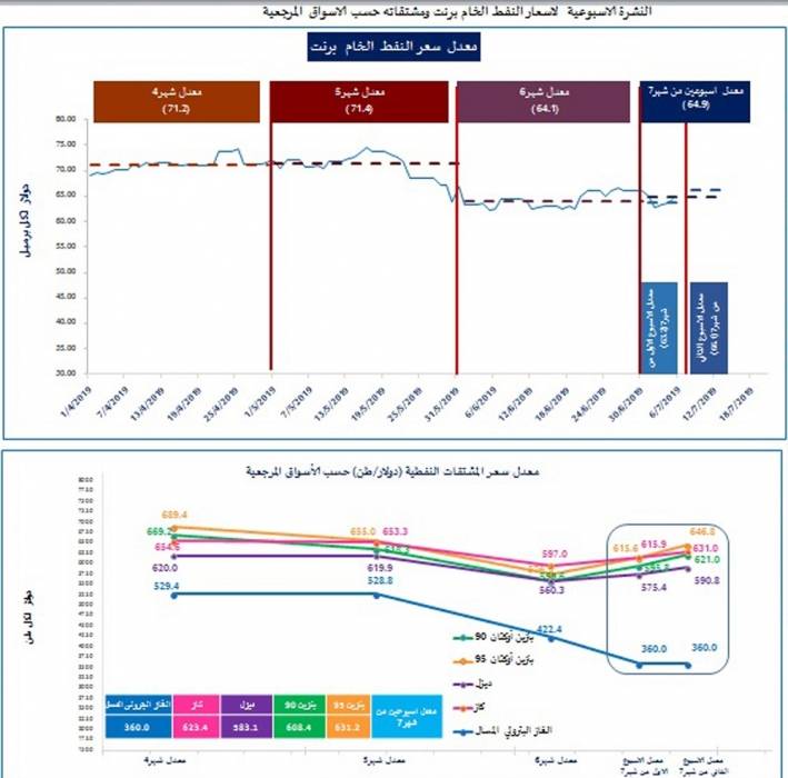 الطاقة:ارتفاع أسعار برنت والمشتقات النفطية في الأسبوع الثاني من تموز