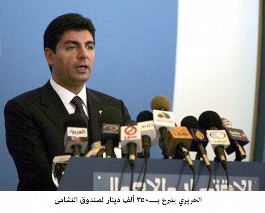 الحريري يتبرع بــــ350 ألف دينار لصندوق النشامى