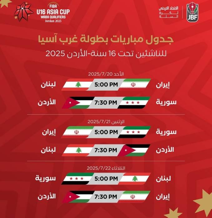 انطلاق بطولة غرب آسيا للناشئين.. والاتحاد يدعو الجماهير لدعم "صقور النشامى"