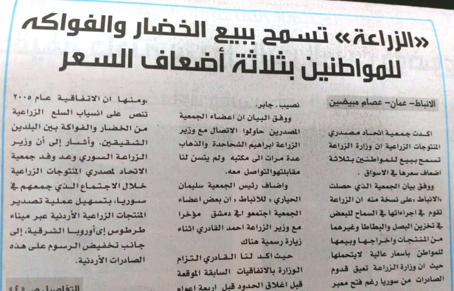 حماية المستهلك: إرتفاع أسعار الخضار والفواكه بشكل مبالغ فيه