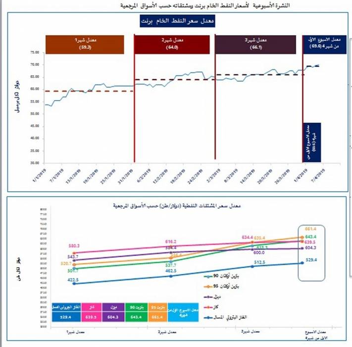 ارتفاع ملحوظ على أسعار برنت والبنزين خلال الأسبوع الأول من شهر نيسان